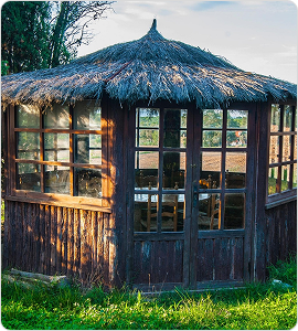Застекленная постройка — это не только комфортно и удобно, но еще и эстетично. Можно подбирать различные материалы — алюминий, дерево, пластик, которые будут гармонично сочетаться с фасадом и кровлей. Кроме этого, можно выбирать окна с цветными каркасами и стеклопакеты с узорами. Сегодня доступны разные варианты остекления беседки, которые позволяют подобрать решение под любой стиль и бюджет.